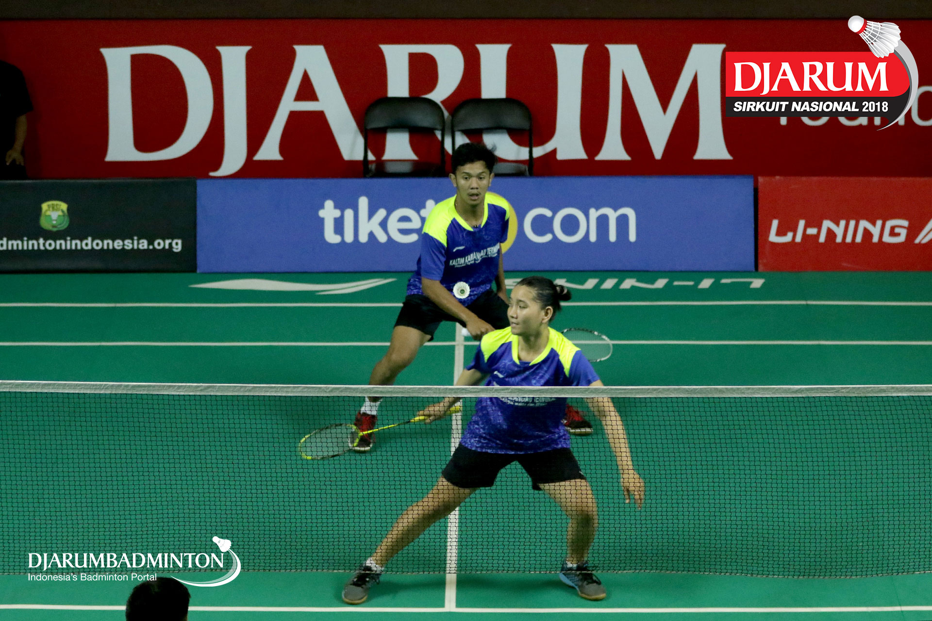 Haikal Afrizal/Novianny Thalia Angel Wowor (Hevindo, Balikpapan) bersiap menghadang shuttlecock