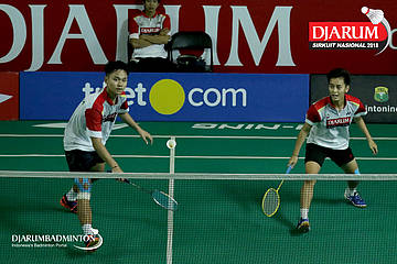 I Putu Pande Sheva Brahmantya Putra/Aldira Rizki Putri (PB Djarum, Kudus) bersiap menghadang serangan