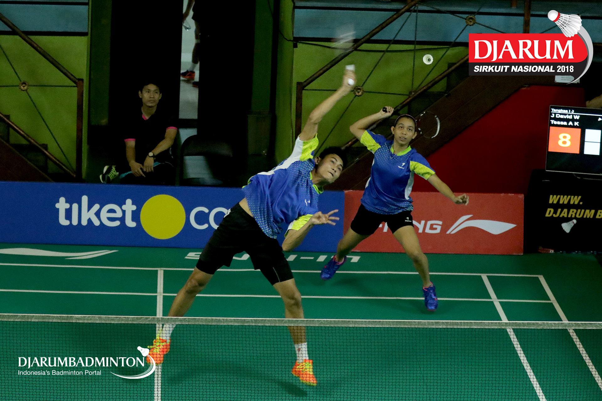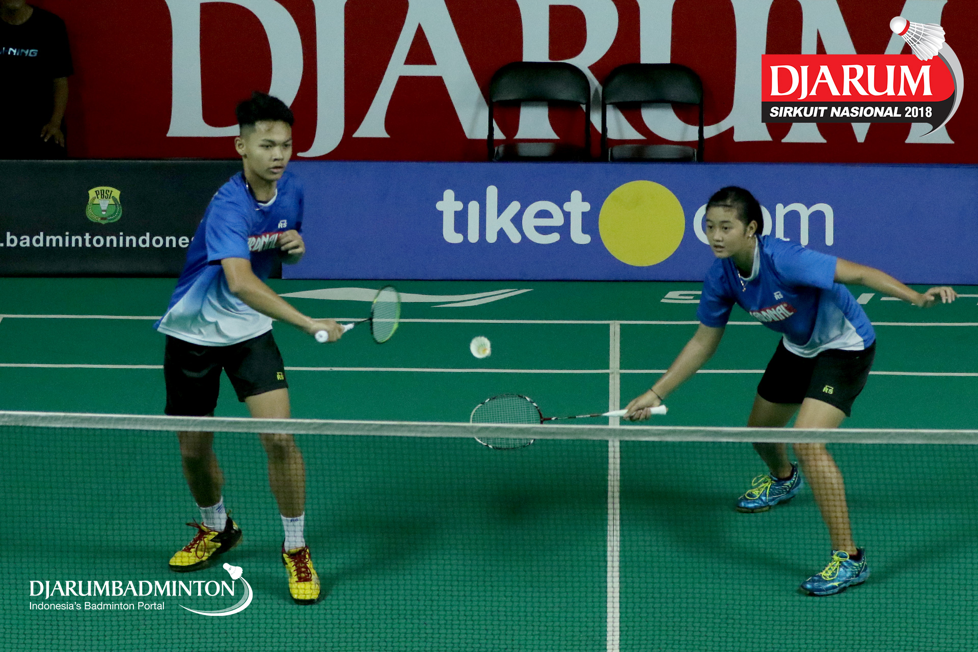 Joshua David Wardana/Tessa Anjali Karouw (Tangkas Intiland, Jaksel) bersiap mengembalikan serangan