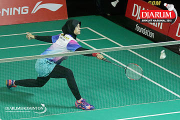 Novia Rahmawati (PB BINTANG SOLIBAD INDONESIA) mengembalikan shuttlecock