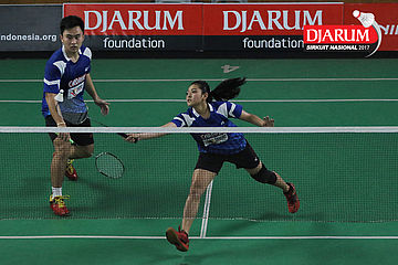 Reinard Dhanriano/Maretha Dea Giovani (Mutiara Cardinal Bandung) Mengembalikan Shuttlecock