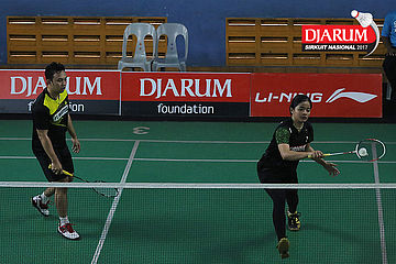 Steven Henri Cornelis/Desta Akastiningrum (Pusdiklat Telkom Bandung) Mengembalikan Shuttlecock
