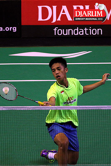 Yohanes Kevin (Mutiara Cardinal) mengembalikan shuttlecock