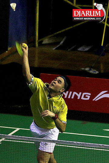 Rio Friza (Jaya Raya) mengembalikan shuttlecock
