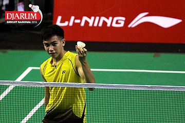 Tri Cahya (Djarum Kudus) melepaskan serangan