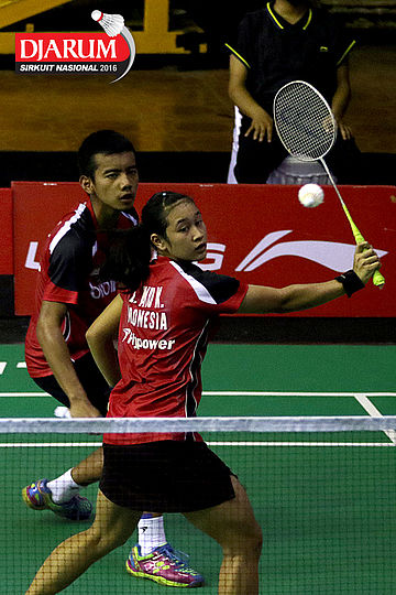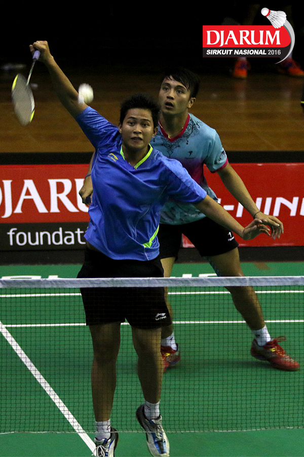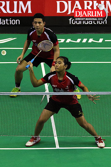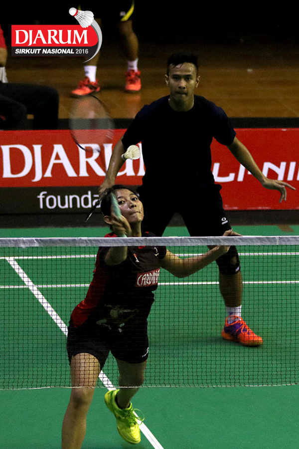 Pramudya Kusumawardana/Lisa Ayu (Djarum Kudus) mengembalikan shuttlecock