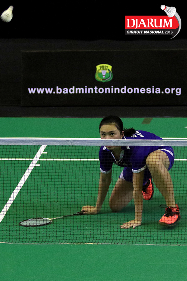Senatria Agus/Gabby Ristiyani (SGS PLN/Mutiara Cardinal) menyambar pengembalian