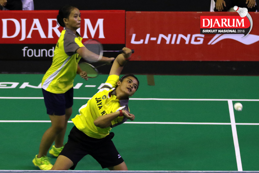 Anggit Warastiwi/Dara Sri (Jaya Raya) mengembalikan shuttlecock