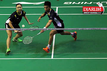 Lukhi Apri/Ririn Amelia (Djarum Kudus) berhasil menghadang serangan