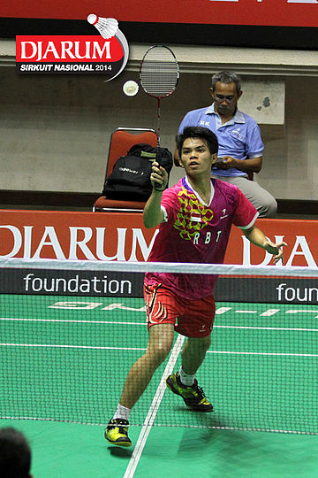 A. K Zailani (MUTIARA CARDINAL) mengantisipasi datangnya shuttlecock