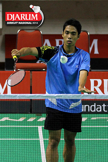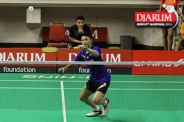 Amal Ori Wibowo (SARWENDAH BADMINTON) menerima serve Gary Lam (HIQUA PRIMA BANDUNG)