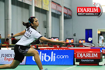Ghaida Nurul (Djarum Kudus) berhasil menyambut pengembalian dari Fitria Anggraeni (Exist Sampurna)