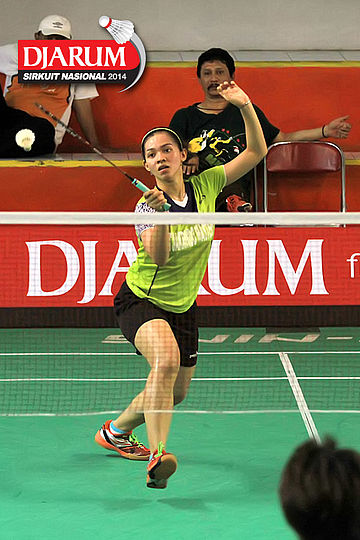 Ana Rovita (Djarum Kudus) berhasil menghadang serangan yang dilepaskan Jauza Fadhila (Pelatprov PBSI DKI Jakarta)