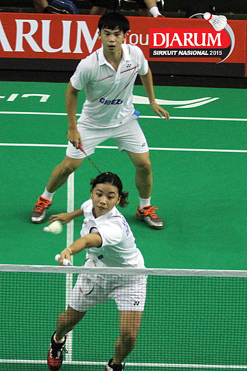 Liu Wei Chen/Wen Hou Yun (Taiwan) menyambar pengembalian dari Aryanto Haryadi/Nathalia Poluakan (JR Enkei).