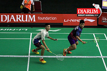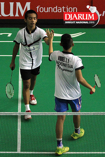 Kekompakan Pramudya Kusumawardana dan Viorel Joan (Djarum Kudus) di lapangan.