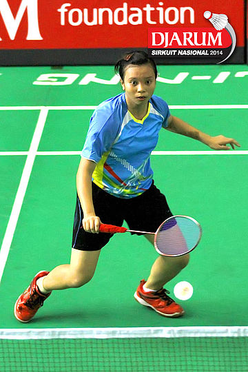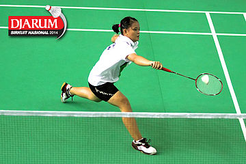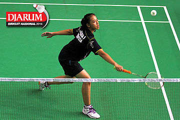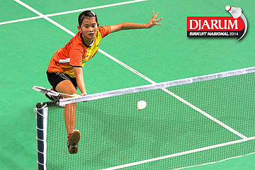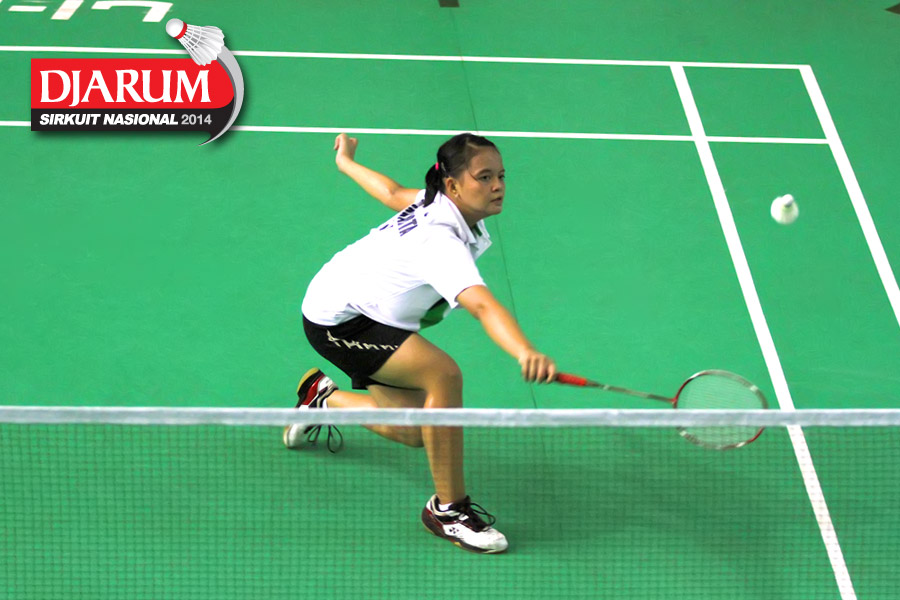 Syarifah Nurmariam (Victory Bogor) mengembalikan shuttlecock ke arah Adefrit Ardina (Jaya Raya)