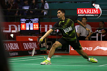Bandar Sigit (USM) mengembalikan shuttlecock.