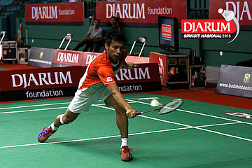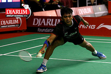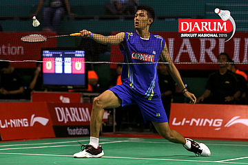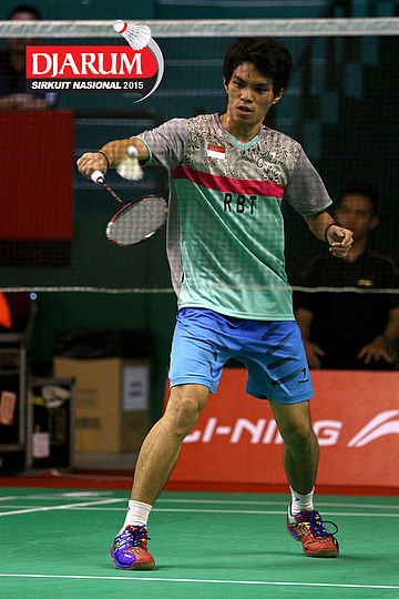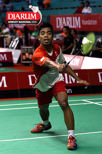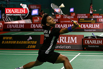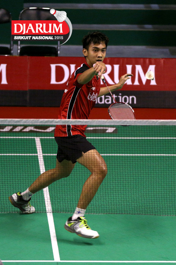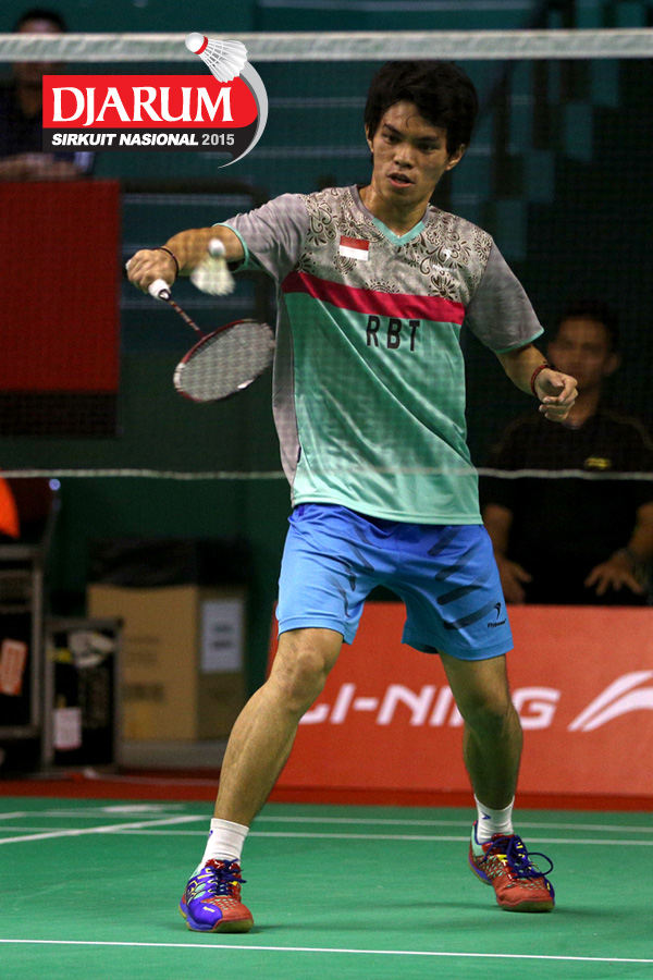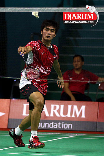 Panji Ahmad (Pelatnas) menyambut shuttlecock.