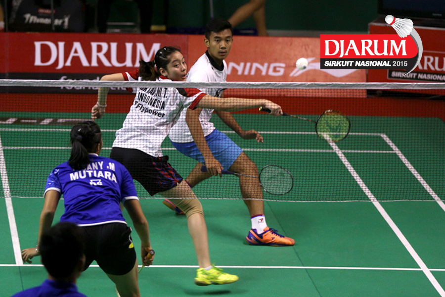 Panji Akbar/Apriyani Rahayu (Pelita Bakrie) melepaskan serangan.