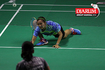 Panji Ahmad (Pelatnas) bersiap menyambut pengembalian.