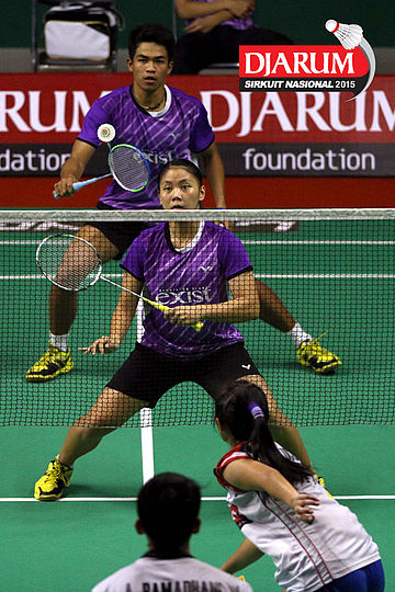 Ardiansyah Putra/Devi Tika (Berkat Abadi) bersiap menyambar pengembalian.