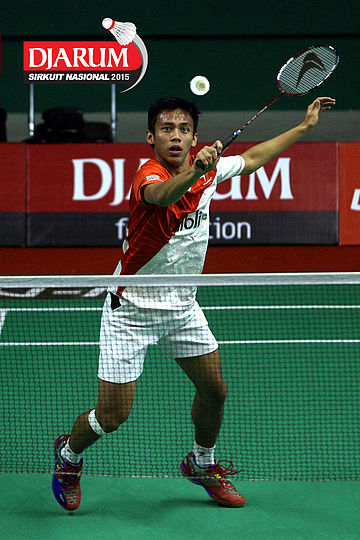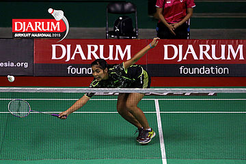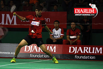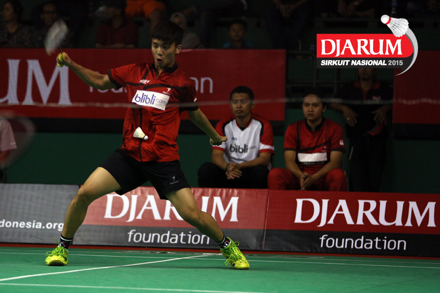 Krinsa Adi (Pelatnas) bersiap menyambar pengembalian.
