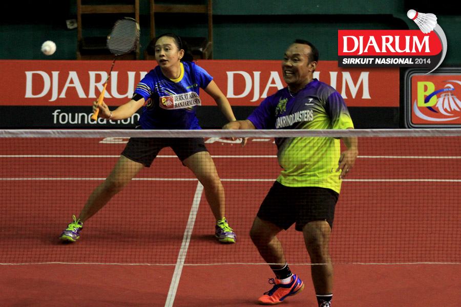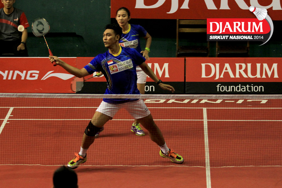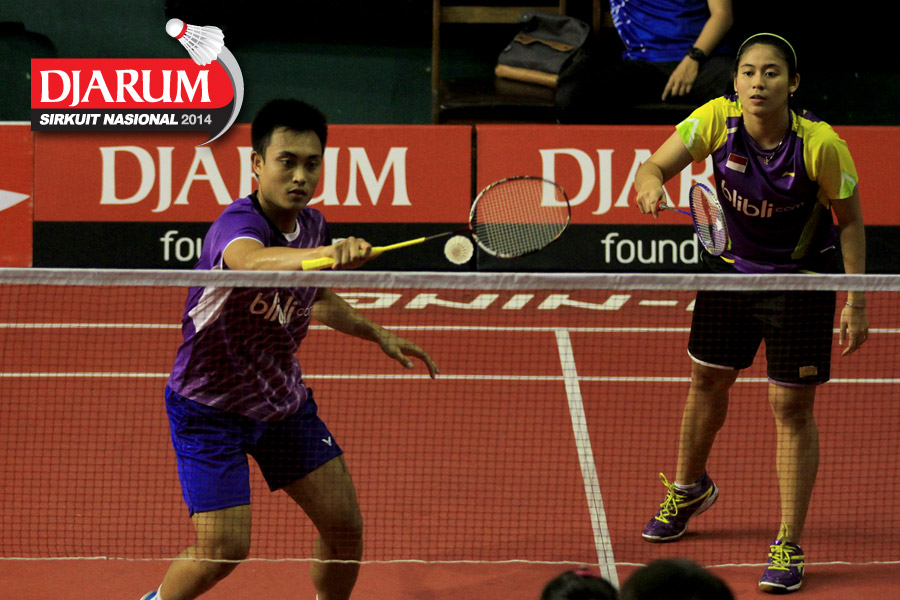 Trikus Haryanto/Keshya Nurvita Hanadia (Tjakrindo Masters/SGS PLN) berhasil menghadang serangan yang dilepaskan Ridho Akbar/Sri Wulan (Halim/Jaya Raya)