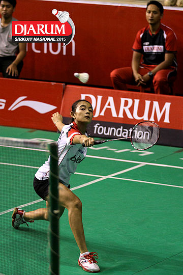 Silvi Wulandari (Djarum Kudus) mengembalikan shuttlecock