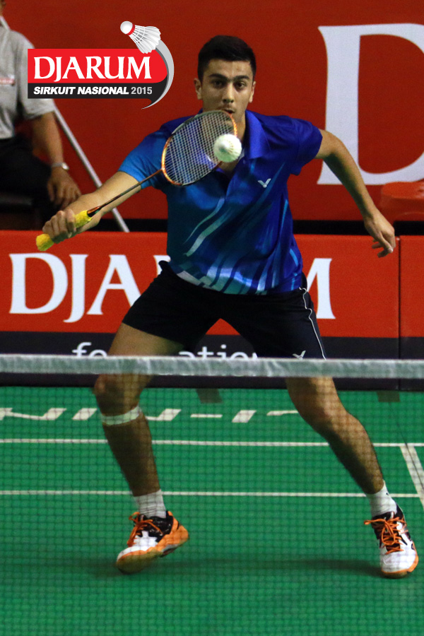 Hendrik Budiwijaya (SGS PLN) mengembalikan shuttlecock