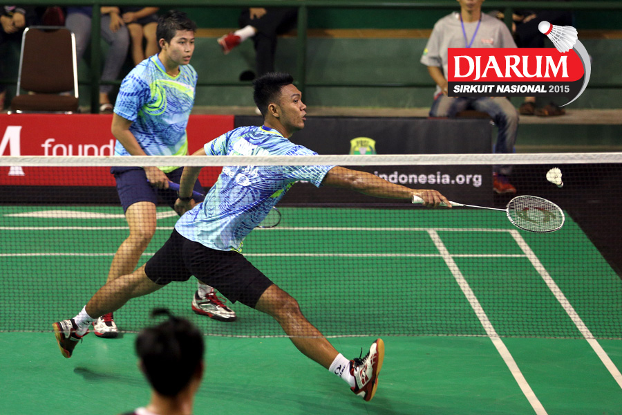 Ardy Nugroho/Lisa Ayu (Djarum Kudus) menghadang serangan.