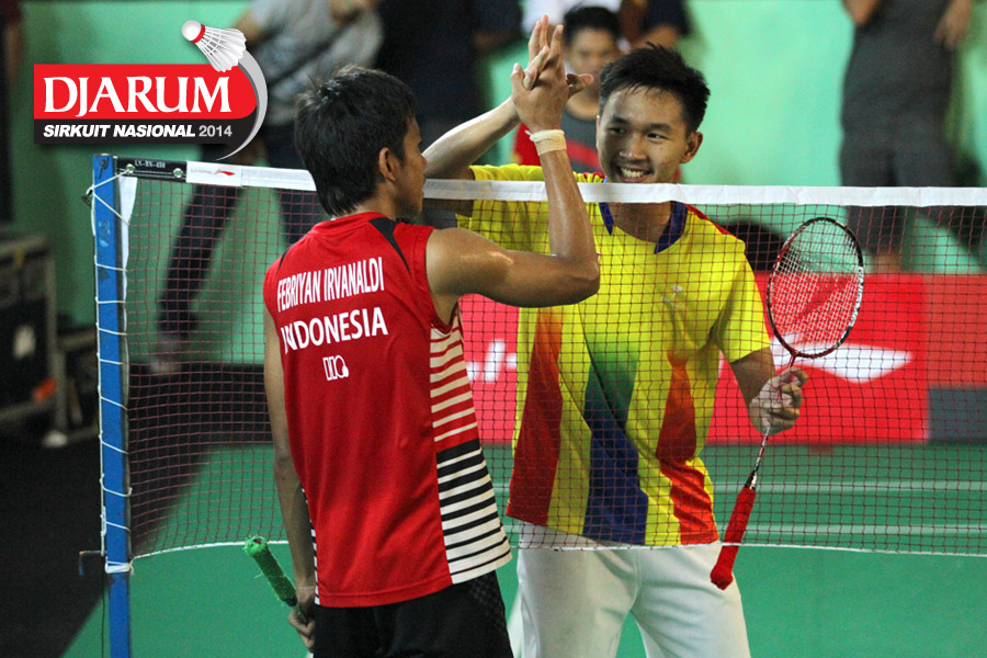 Setyaldi Putra (Guna Dharma) dan Febrian Irvanaldi (Hi Qua Wima) saling bersalaman usai bertanding