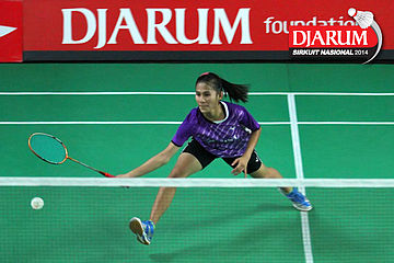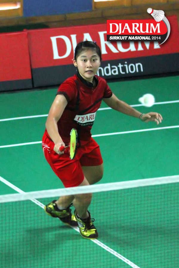Marsa Indah Salsabila (PB Djarum) bersiap menyambut pengembalian dari Novi (PB Bintaro Jaya Raya).