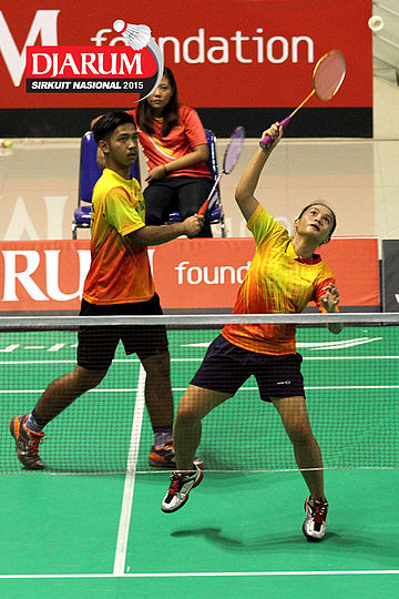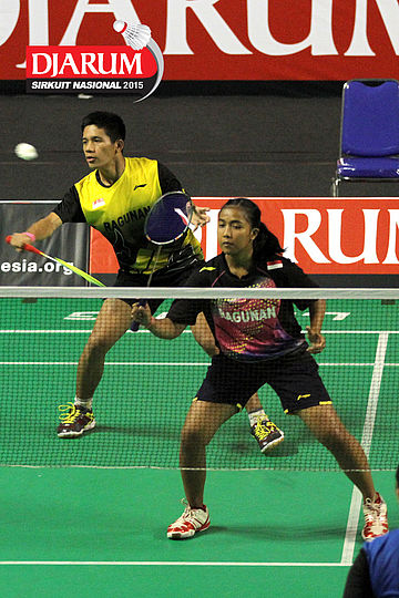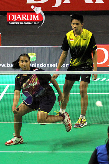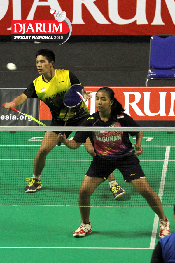 Brian Berri/Lisa Ayu (Djarum Kudus) bersiap menyambut serve.