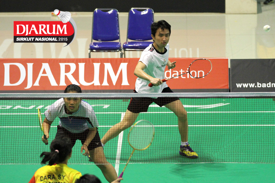 Kevin Owen/Ally Chia (Bank Riau Kepri Pekanbaru) bersiap menyambut pengembalian.