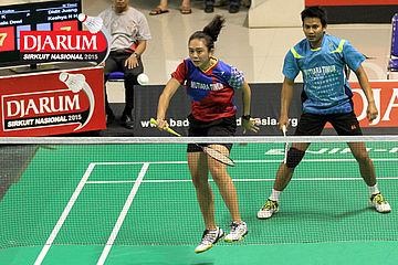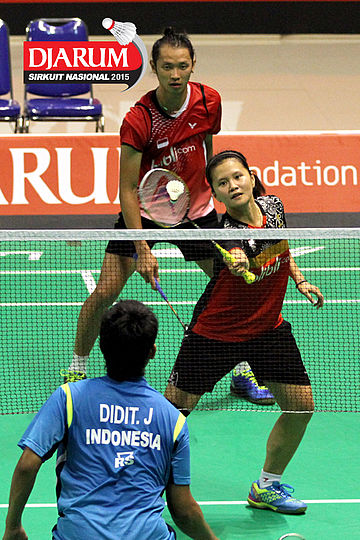 Fran Kurniawan/Komala Dewi (Djarum Kudus) menyambut serve.