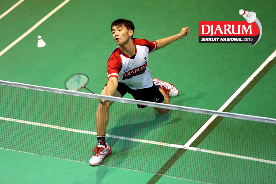 Ramdhani M. Zulkifli (Djarum Kudus) bersiap menyanbut pengembalian dari Travis Moniaga (Tangkas).