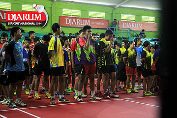 Para peserta saat mengikuti upacara pembukaan Djarum Sirkuit Nasional Li-Ning Sumatera Barat Open 2014