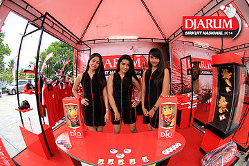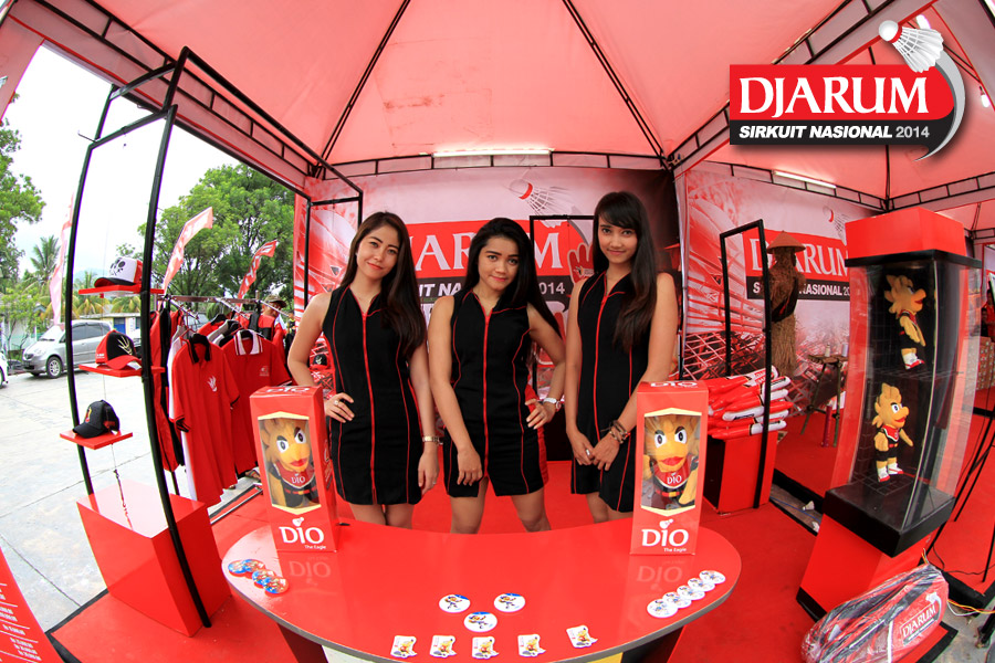 Tiga usher saat berpose di booth merchandise Djarum Sirkuit Nasional 2014