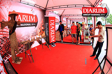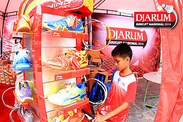 Salah satu pengunjung saat memainkan gimik di booth merchandise Djarum Sirkuit Nasional 2014