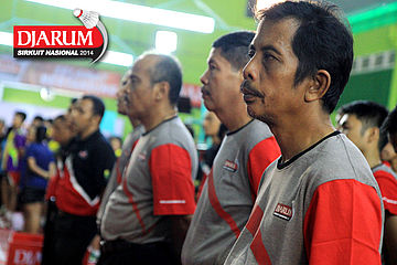Para linesman saat mengikuti upacara pembukaan Djarum Sirkuit Nasional Li-Ning Sumatera Barat Open 2014