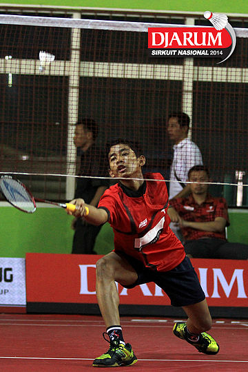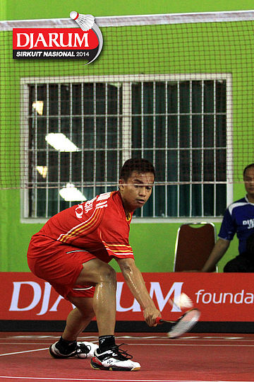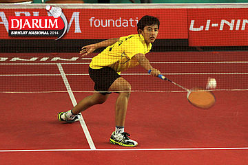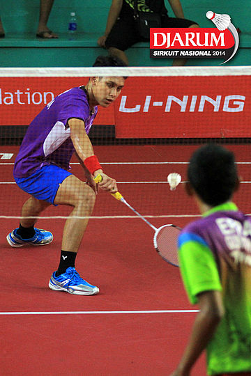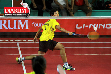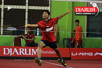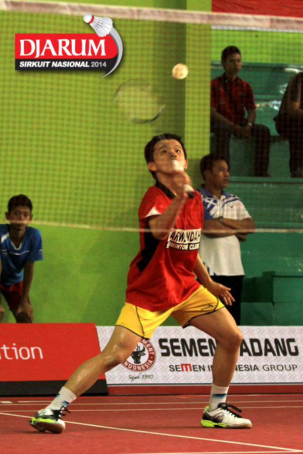 Handoko Yusuf (Djarum Kudus) berusaha menggapai pengembalian dari Radhian (Dispora Jambi)