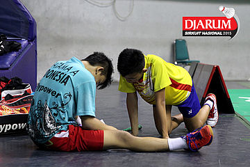 Salah satu pebulutangkis saat kelelahan berlatih