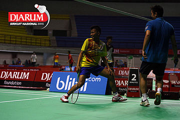 Salah satu pebulutangkis saat berlatih di GOR Among Raga, Yogyakarta