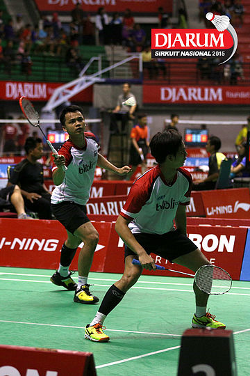 Andrei Adistia/Hendra Aprida Gunawan (Djarum Kudus) bersiap menyambut pengembalian.