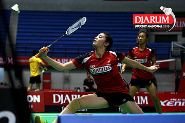 Dian Fitriani/Nadya Melati (Pertamina Fastron) menyambar pengembalian.