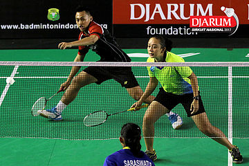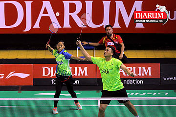 Tedi Supriadi/Keshya Nurvita Hanadia (Djarum Kudus/Berkat Abadi) Bersiap Menyambar Pengembalian Tanggung