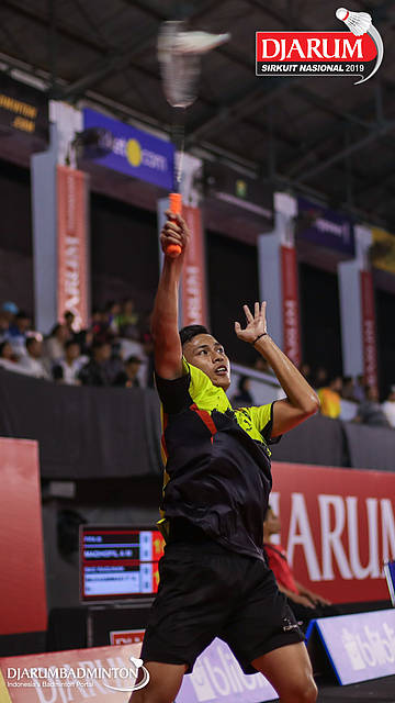 Ridwan Anas (Indocafe, Medan) menyambut shuttlecock