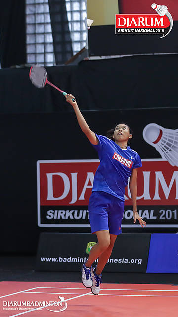 Saifi Rizka Nurhidayah (Mutiara Cardinal, Bandung) bersiap menyambut shuttlecock
