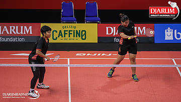 Elok Machsunnah+Muzammil Elya Tantri (Pratama Badminton Academy, Sby) bersiap melepaskan serangan