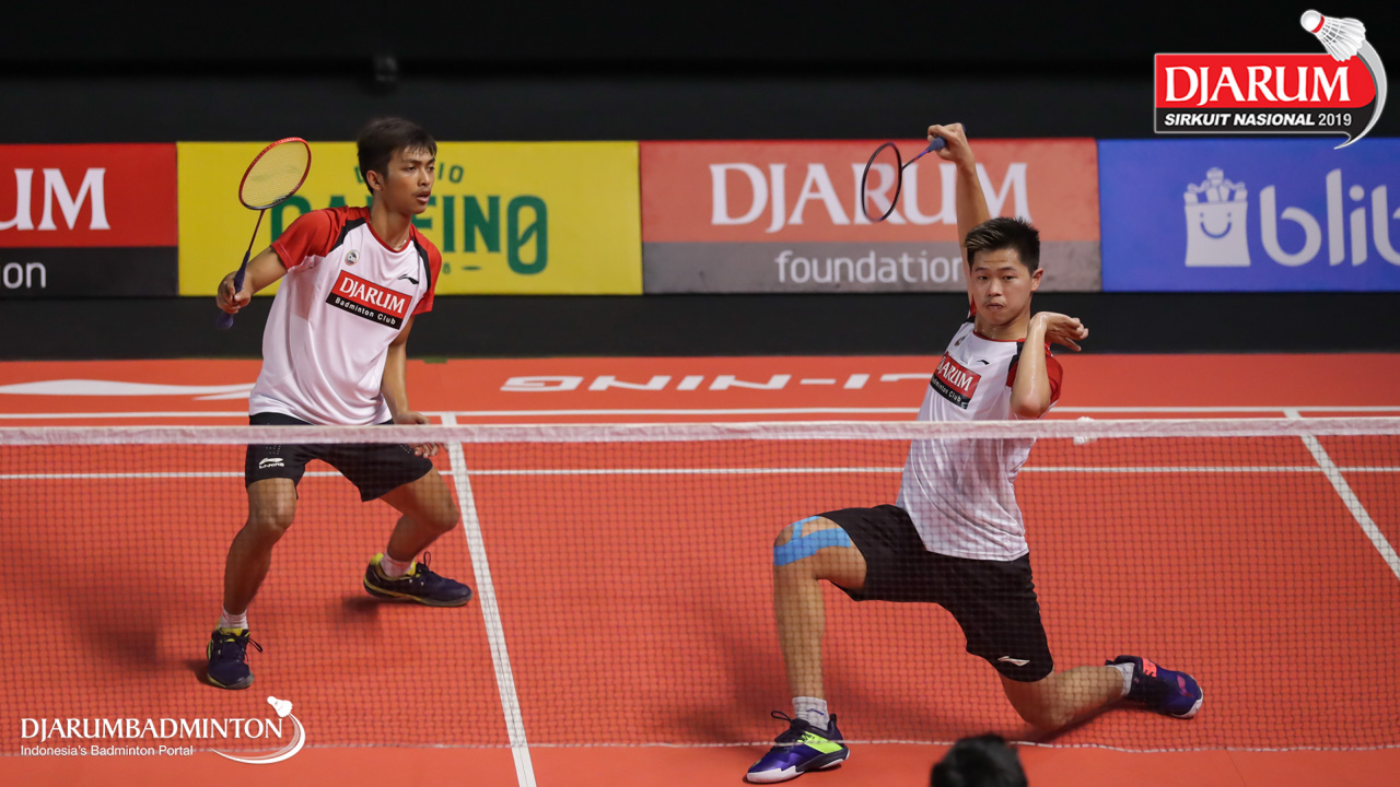 Ivan Adi Cahyono+Vincentius Suwarland (PB Djarum, Kudus) berusaha mengembalikan seragan